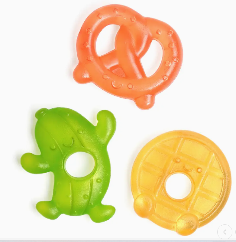 Help your little one keep their cool while teething with these adorable cactus teethers! Our 3-pack of water-filled teethers are textured on both sides to help soothe sore gums, and they can be chilled in the refrigerator for extra relief. Their open shape is easy for baby to hold and their trendy designs make them even easier on the eyes!
