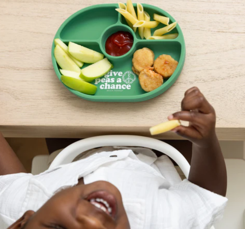 Our silicone suction plate is divided into 3 sections for well balanced meals, promotes good eating habits and appropriate portions. The plate suctions to any table or highchair tray to keep meals in place.